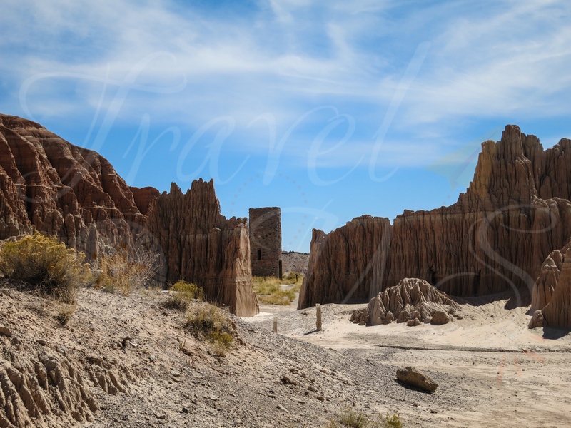 Après un arrêt dans la petite ville de Pioche où nous avons tenté, sans succès, de trouver le Boot Hill Cemetery (il y a des panneaux indiquant ce lieu dans la ville mais nous avons certainement dû louper quelque chose puisque nous avons tourné en rond quelques fois), nous avons pique-niquer dans le Cathedral Gorge State Park. Nous avouons, il s’agissait encore ici d’un pur hasard… En plus, le paysage est magnifique! Nous nous retrouvons dans une sorte de gorge où l’on peut observer des colonnes d’argiles formées par les éléments depuis des millions d’années. Très peu connu, ce parc est peu balisé, laissant ainsi la possibilité de le visiter à sa guise.